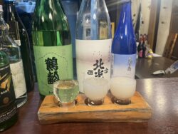 また、日替わり日本酒には飲み比べセット(60ml×3種)もあり、日本酒好きにはたまらないメニューです。
